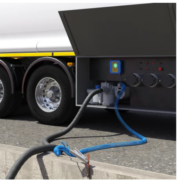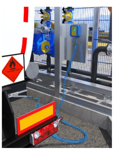 Sau khi kẹp tiếp địa được kết nối với xe bồn, hệ thống kiểm tra chất lượng kết nối.