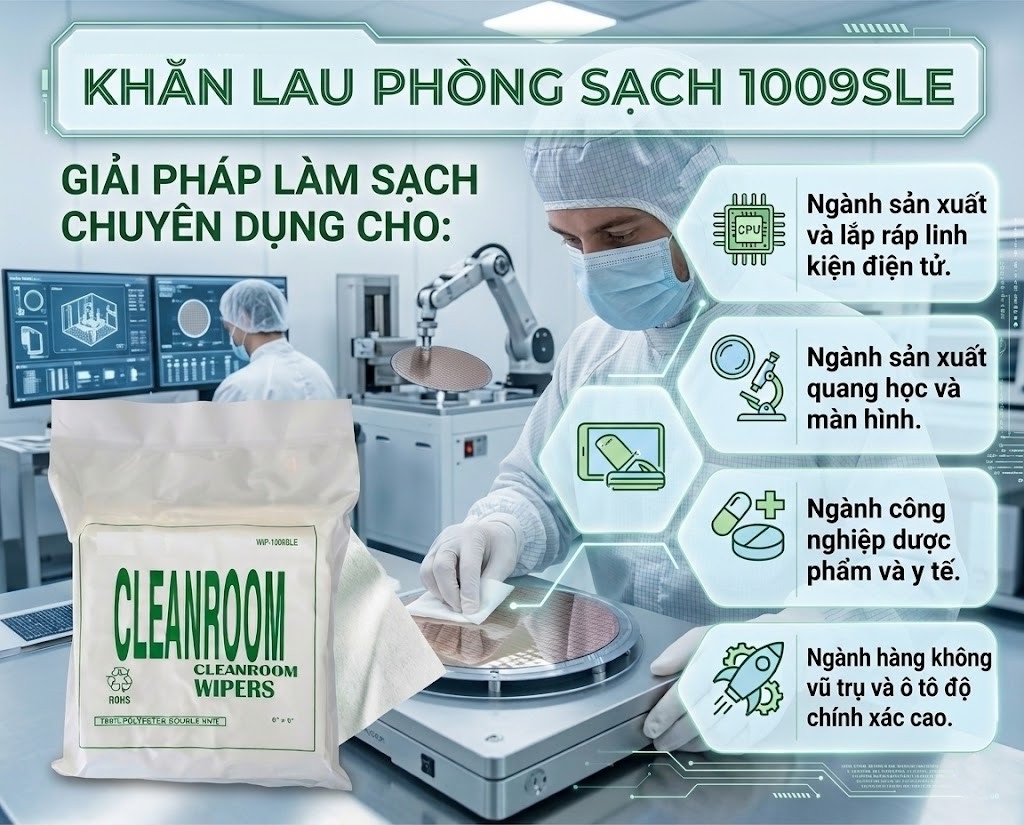 Trong môi trường sản xuất điện tử, SMT, PCB, quang học, y tế và dược phẩm, chỉ một lượng bụi siêu nhỏ cũng có thể gây lỗi sản phẩm, giảm tỷ lệ pass QC và làm tăng chi phí sản xuất. Vì vậy, việc lựa chọn khăn lau phòng sạch 1009SLE đạt chuẩn là yếu tố cực kỳ quan trọng.